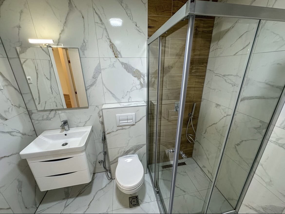 A spacious and bright one-bedroom apartment with an area of 57 m² in a newly completed building. The apartment is located on the first floor and features an excellent layout and a separate kitchen.