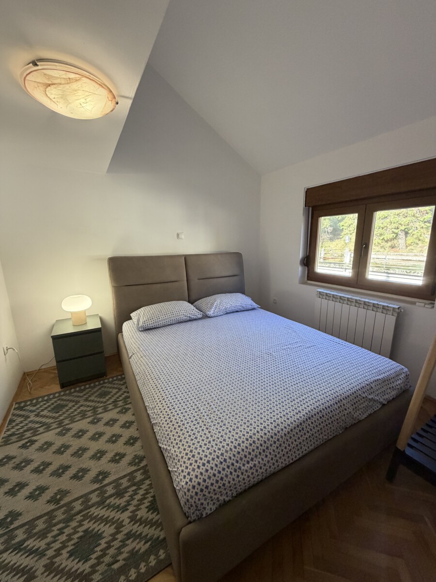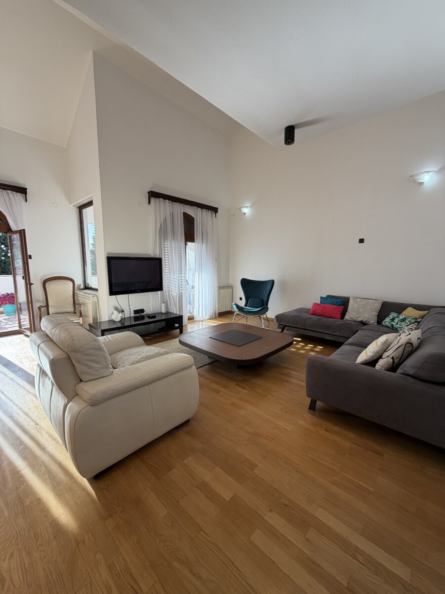 A five-room apartment of 285 m² is for rent within a house in the prestigious neighborhood of Gorica C. The apartment is exceptionally comfortable and functional, featuring two bathrooms, a guest toilet, and a laundry room, and comes with four parking spaces and a garage. It is located in a quiet part of the city, ideal for family living. The monthly rent is 3,000 €.