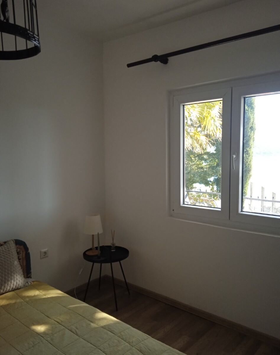COMPLETELY RENOVATED house with a beautiful view of the sea. It is 2 minutes walk down the stairs, about 50 m. The house has a ground floor and a basement, and an architectural and structural project has been completed for the upper floor, for the expansion of the ground floor and the addition of an upper floor, which would not rely on the existing ground floor. This would create two independent three-bedroom apartments. The surface of the plot is 128m2. Water is supplied from a reservoir on the roof and there is a septic tank. In the yard, next to the existing terrace with a terrace, there is a stone barbecue. The kitchen also has a stone masonry part. A stone retaining wall is also along the street. Behind the house, where the part with the staircase to the basement is located, there is parking for 1-2 vehicles. The bay is known for its clean water, and there is no sewage system. Bar is nearby. The beaches are diverse, the so-called Novi Sad beach has fine gravel, while the so-called Belgrade beach has stone pontoons and also gravel and large rocks. There is a market IDEA nearby. The place has several restaurants and a hotel.