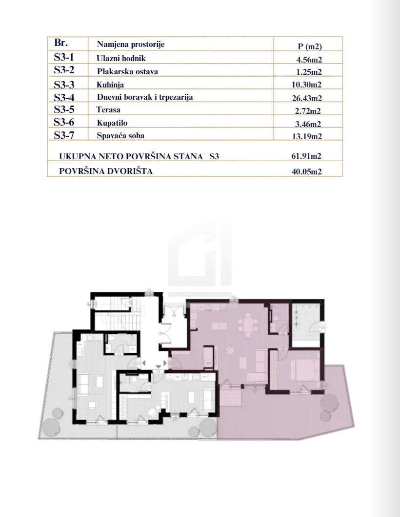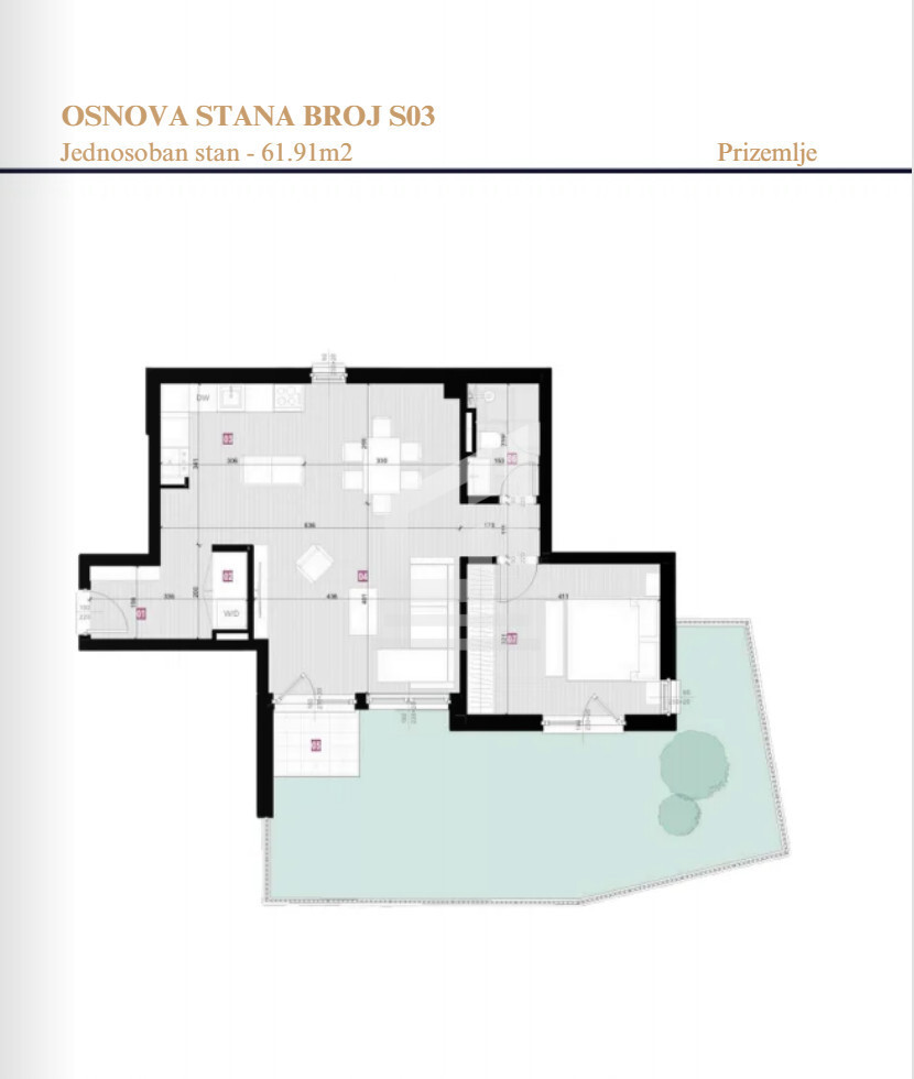 One bedroom apartment of 61,91sq.m with the garden of 40,05sq.m, Casa II – Zagorič