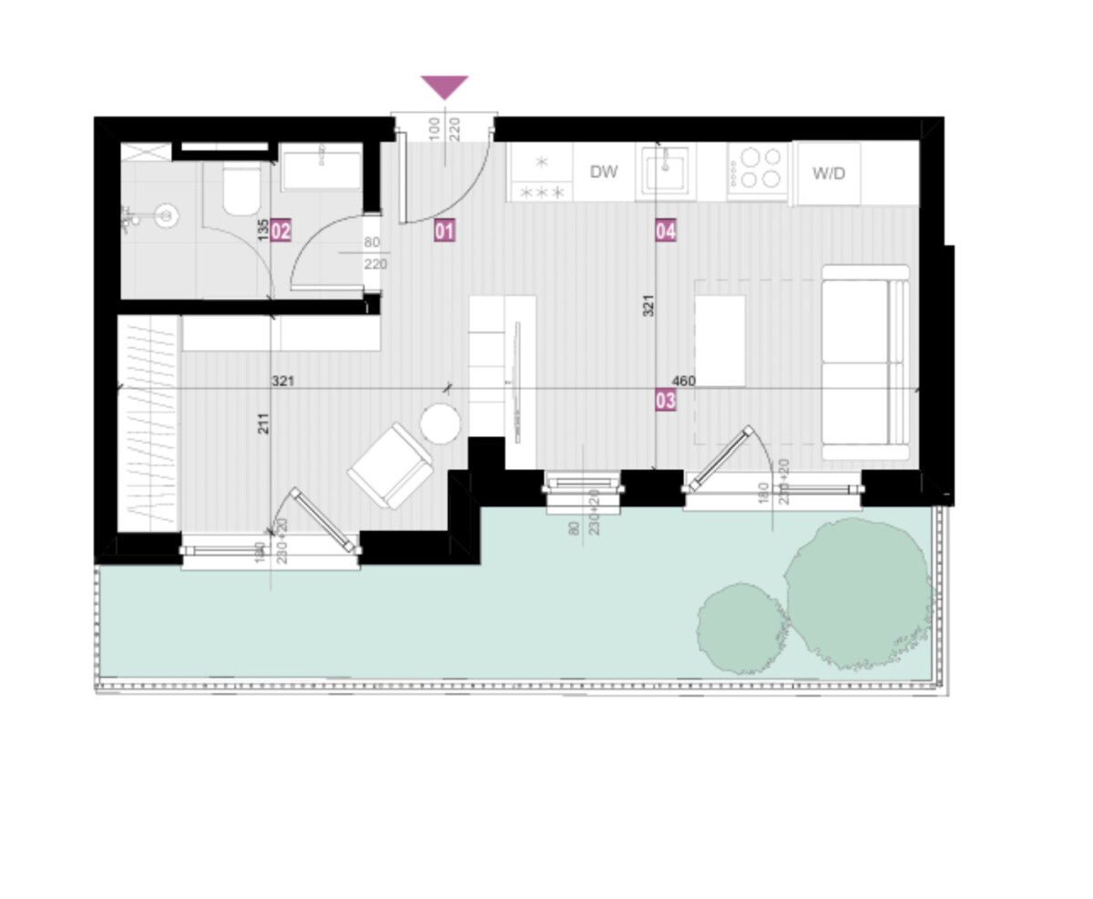A studio apartment of 26.18 m² with a yard of 8 m² is for sale, ideal for living or investment.