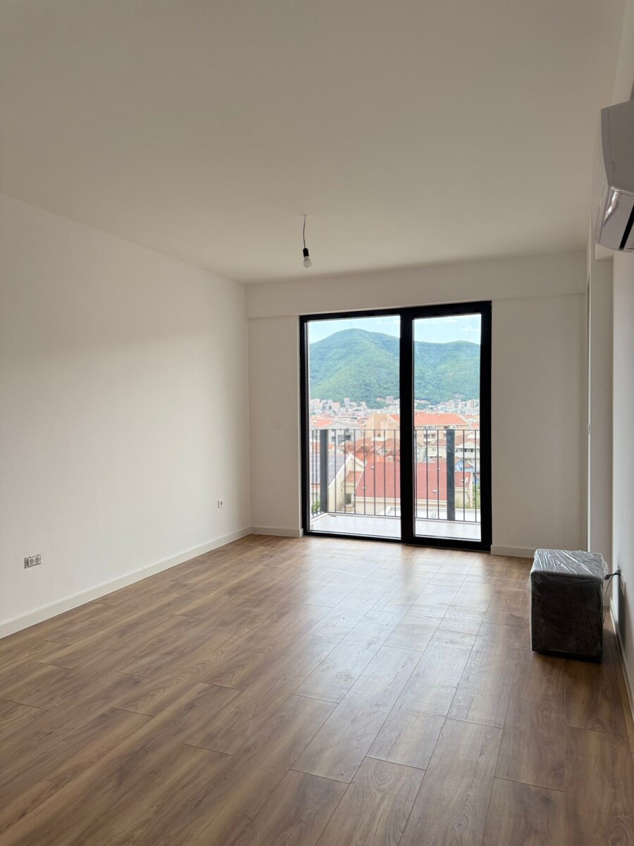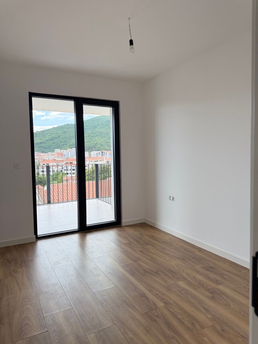 A spacious one-bedroom apartment is for sale in a newly built building in Budva.