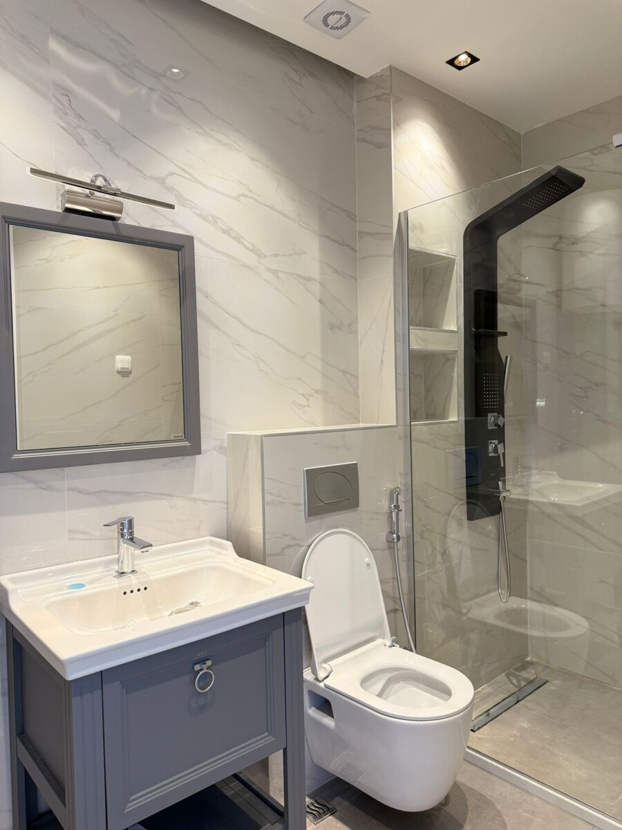 The building is characterized by a modern style and high construction quality. The project includes a swimming pool, gym, and café bar for the residents of the building!