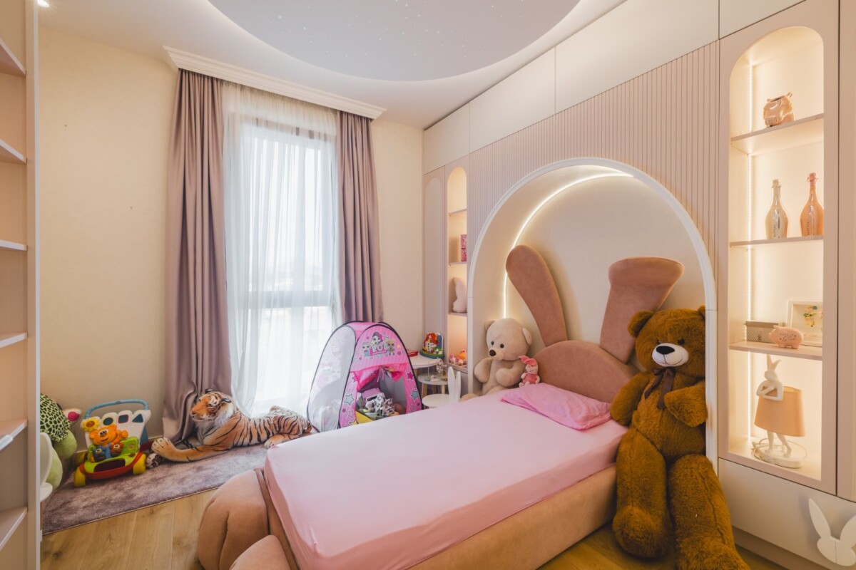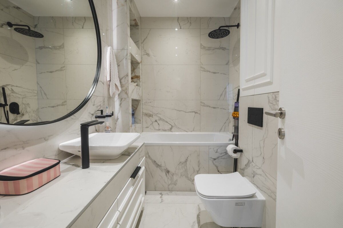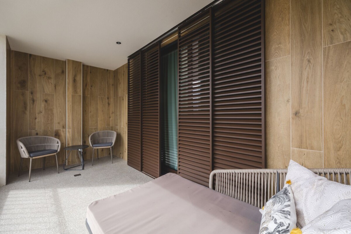The apartment consists of a comfortable living room, dining room and kitchen, as well as three rooms, one of which is a master room with its own bathroom and wardrobe and a terrace, two children’s rooms without a terrace and a bathroom.