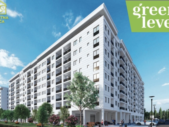 For rent is a two-bedroom apartment of 54 m² with a parking space in the City kvart. Price 550€ per month. Functional layout, living room with kitchen and dining area, bedroom, bathroom, and terrace. View of greenery from the terrace.
