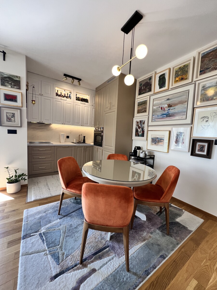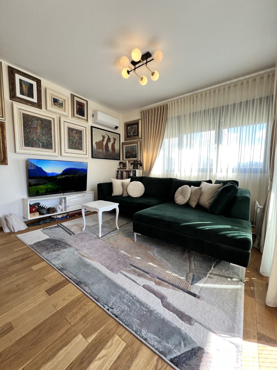 A luxurious two-bedroom apartment of 64 m² is for sale in the Gorica C area. The apartment is located in a new building, on the ground floor, and features modern design and high-quality furnishings.