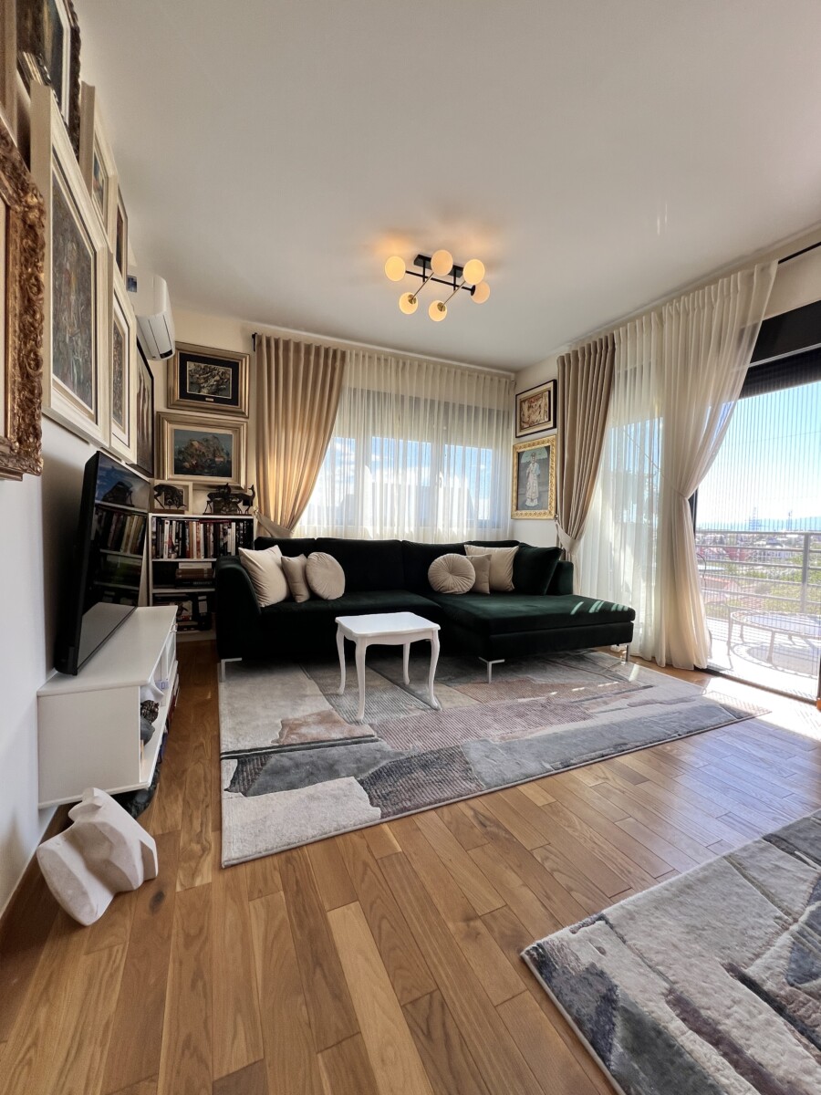 Kompletno je namješten i odmah useljiv. Lokacija je izuzetna – mirna i izdvojena od gradske buke, a istovremeno u blizini centra grada i svih važnih sadržaja.