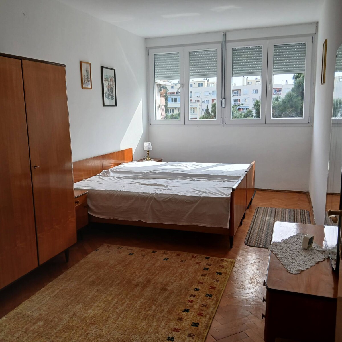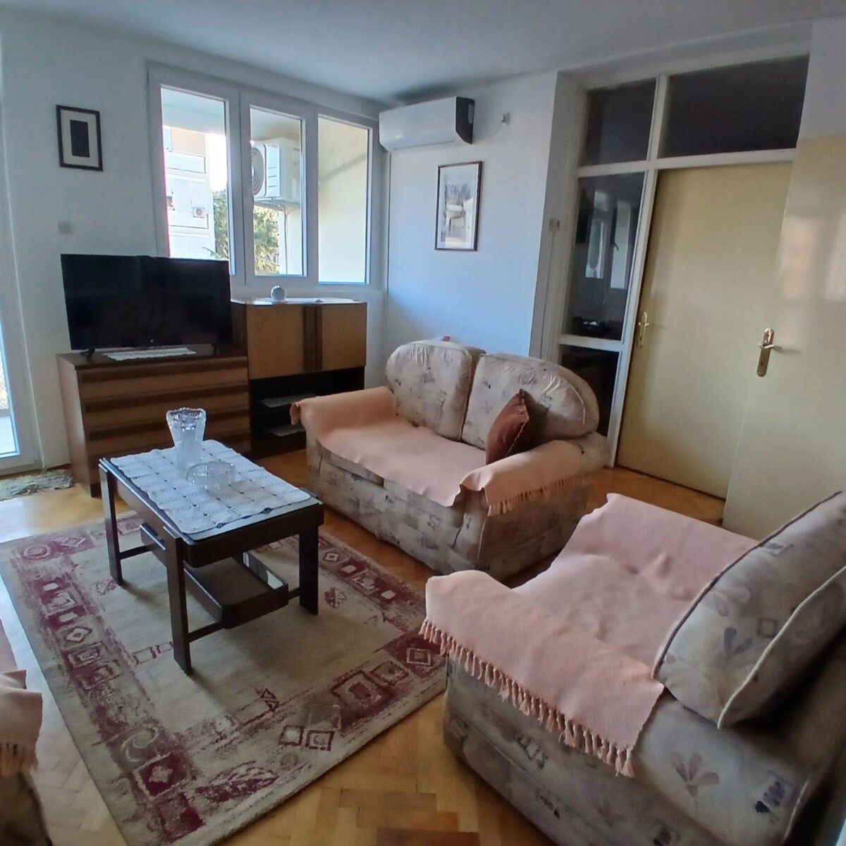 Izdaje se dvosoban stan 66m2 u zgradi “Maše “.Stan je okrenut jugozapadno;ima 2 sobe,odvojene: kuhinju,dnevnu sobu i trpezariju,veliku terasu, kupatilo i 2 manja hodnika. Okrečen je i postavljena je nova eloksirana bravarija. Namjestaj je retro ali sačuvan i zdrav. Sve je dubinski očišćeno (garnitura u dnevnoj sobi i kauč u manjoj sobi),a u spavaćoj sobi je jedan dušek nov.Stan je kompletno opremljen aparatima,posuđem, posteljinom i sl. Cijena 500eur Za više info +38268321550 Jovana