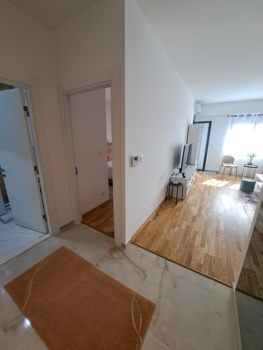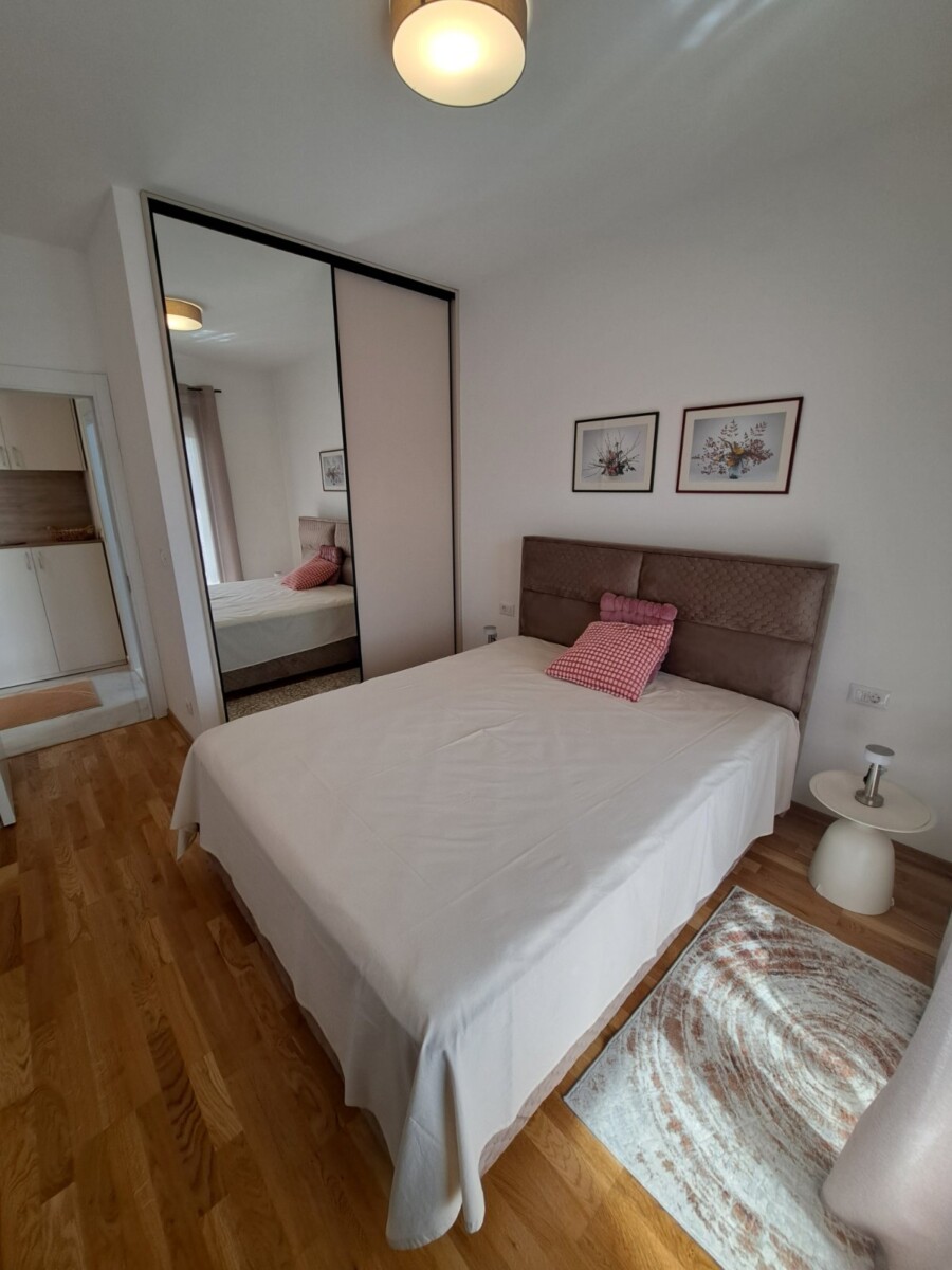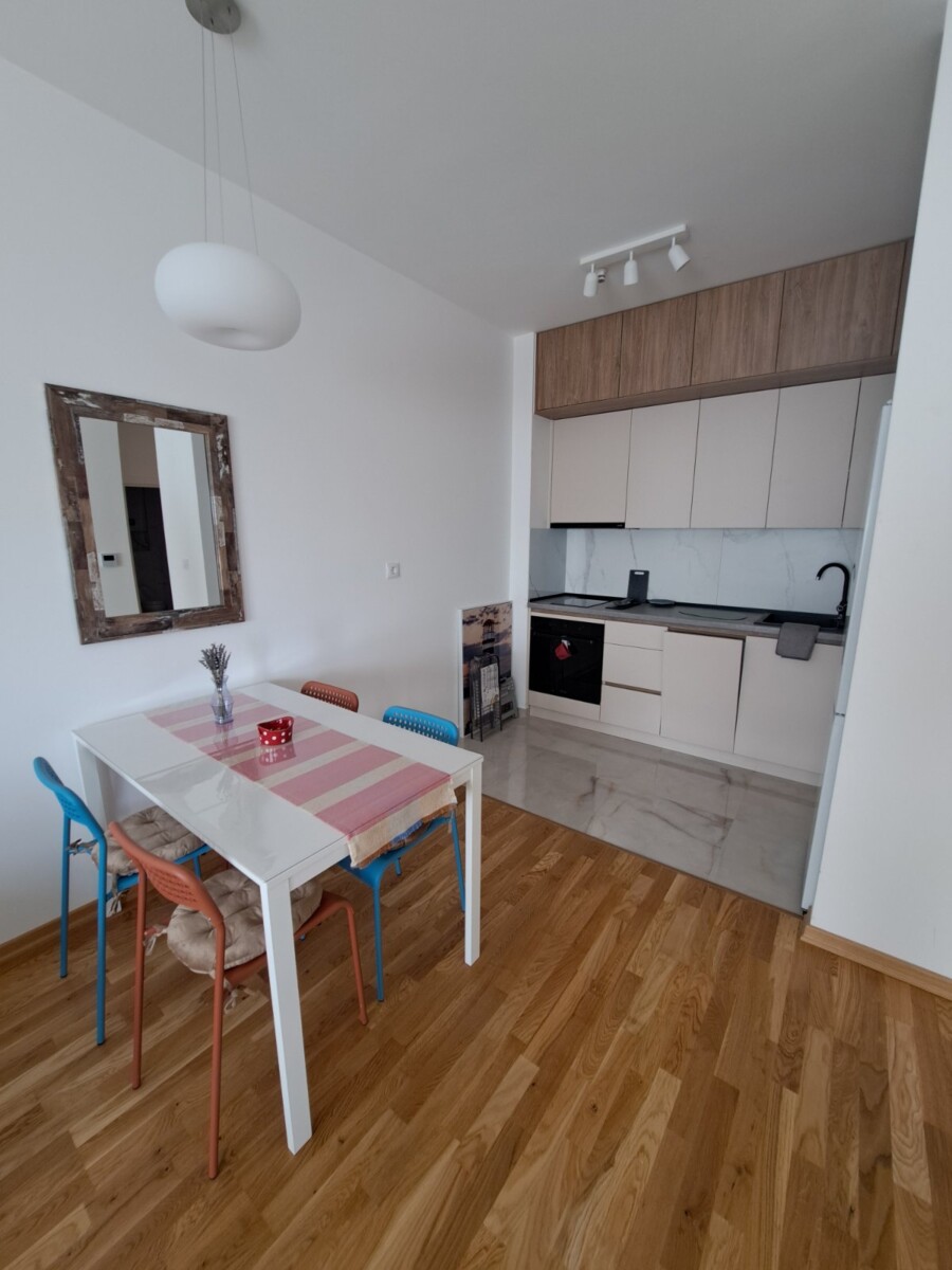 Izdaje se potpuno nov, moderno namješten jednosoban stan od 54m² u Zagoriču (Adam Holding zgrada).
