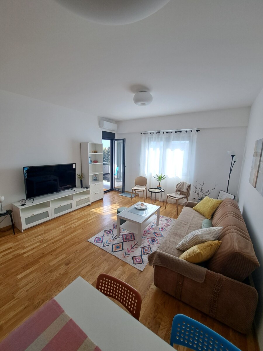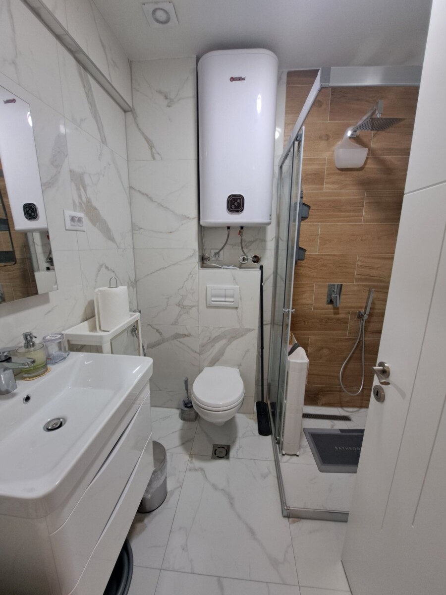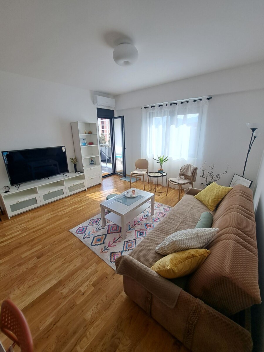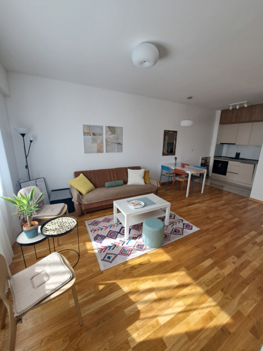 Izdaje se potpuno nov, moderno namješten jednosoban stan od 54m² u Zagoriču (Adam Holding zgrada).