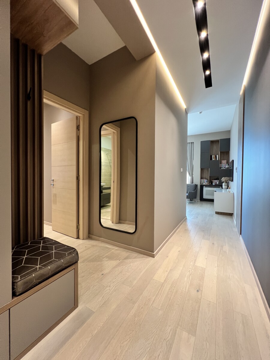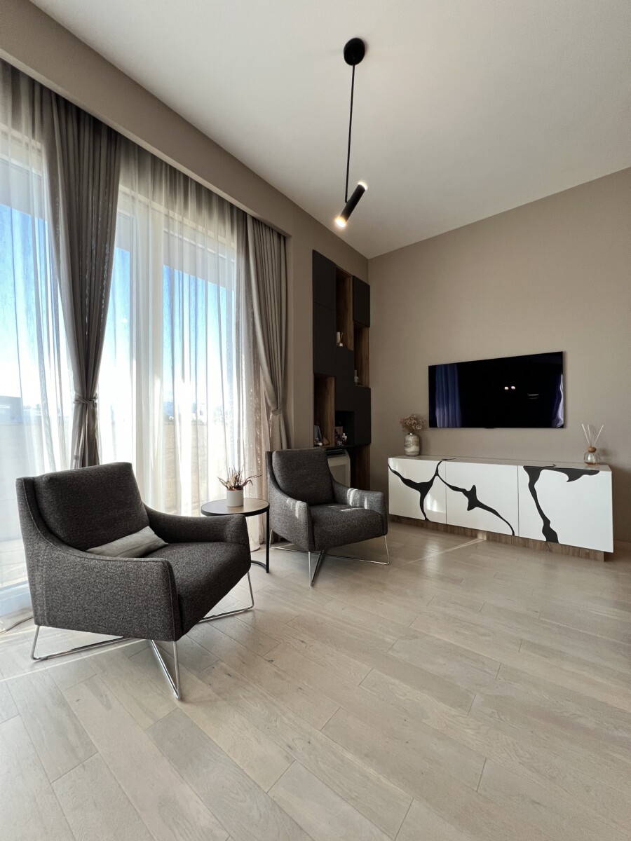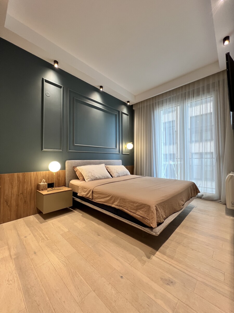 Izdaje se dvosoban stan površine 103 m² u zgradi Oaza, smješten na drugom spratu. Stan je izuzetno komotan, moderno i luksuzno opremljen, sa visinom plafona od 3,20 m što mu daje poseban osjećaj prostranosti. Posjeduje i garažno mjesto. Nalazi se na odličnoj lokaciji, u blizini svih sadržaja. Mjesečna kirija iznosi 2.500 €.