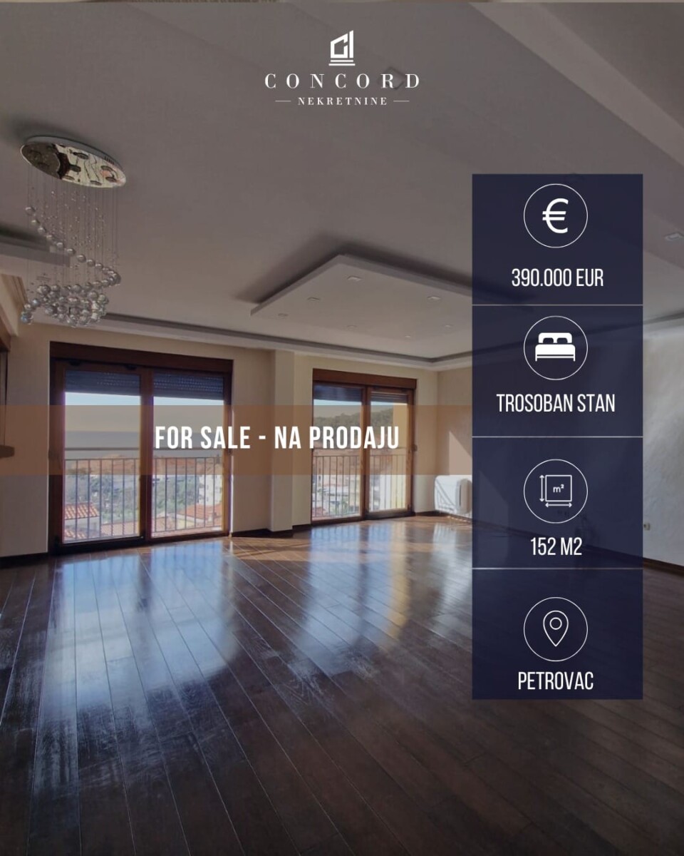 Na prodaju – Prostran stan u Petrovcu, 152 m², 3 spavaće sobe, 3 kupatila.