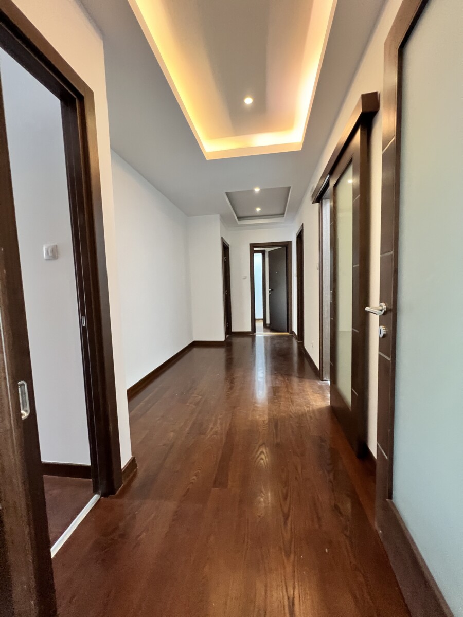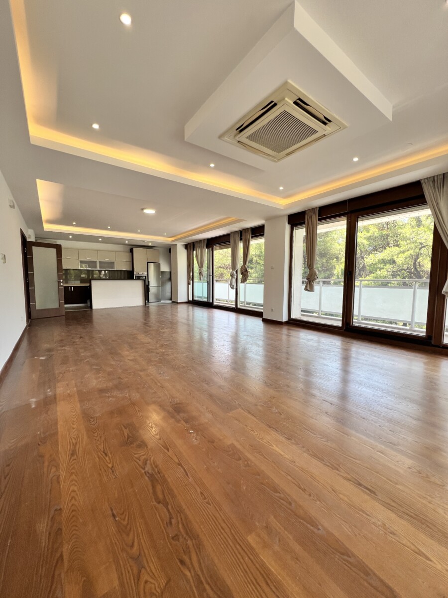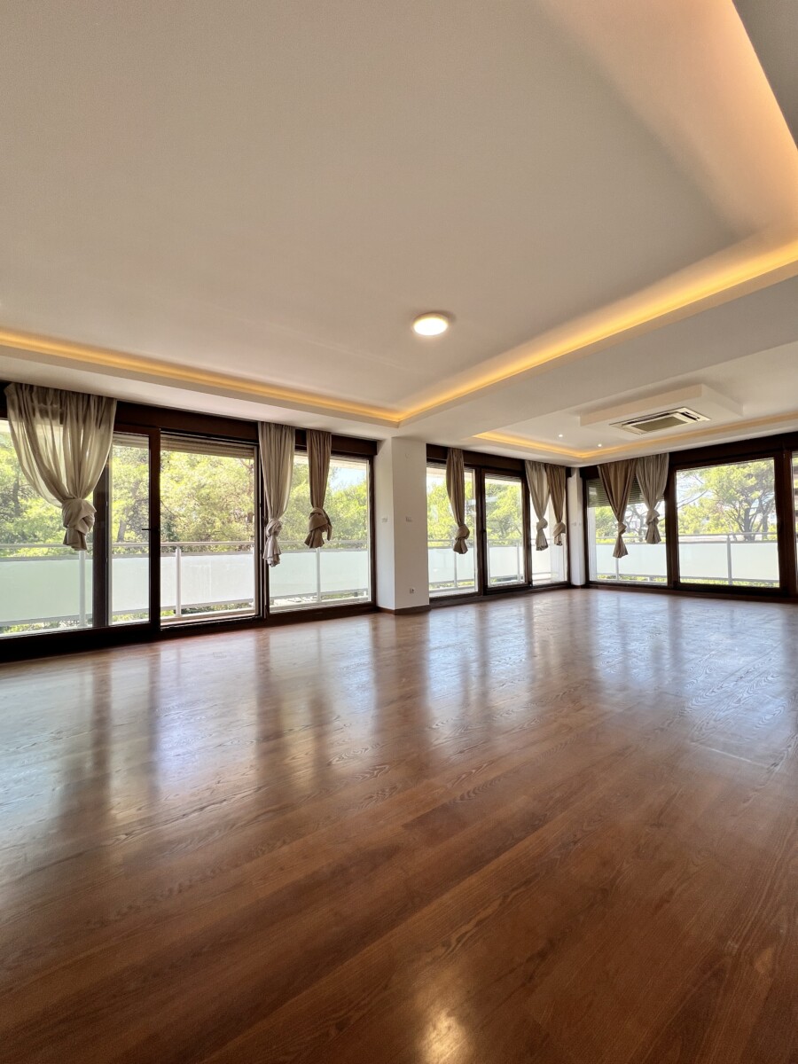 Izdaje se četvorosoban stan površine 228 m² u novijoj zgradi u naselju Preko Morače, na drugom spratu. Jedna od soba je master spavaća soba sa sopstvenim garderoberom i kupatilom. Stan ima ukupno tri kupatila, ostavu, kao i ogroman balkon koji se prostire duž čitavog stana. U cijenu zakupa uključene su i dvije garaže. Nalazi se na odličnoj lokaciji, u blizini svih važnih sadržaja. Mjesečna renta iznosi 3.200 €.