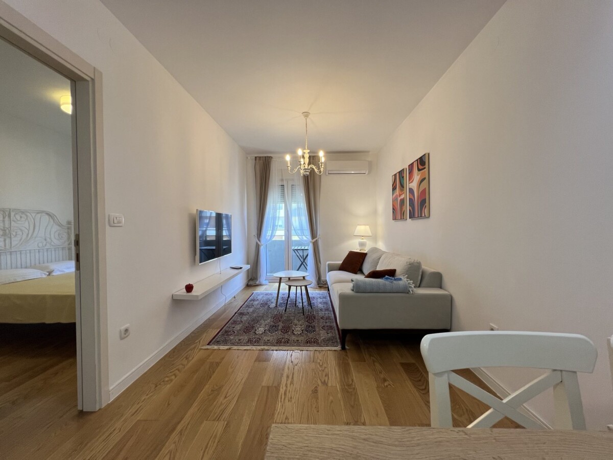 Izdaje se lijepo opremljen jednosoban stan, povrsine 42m2, smjesten na trecem spratu stambene zgrade, u Central Pointu.