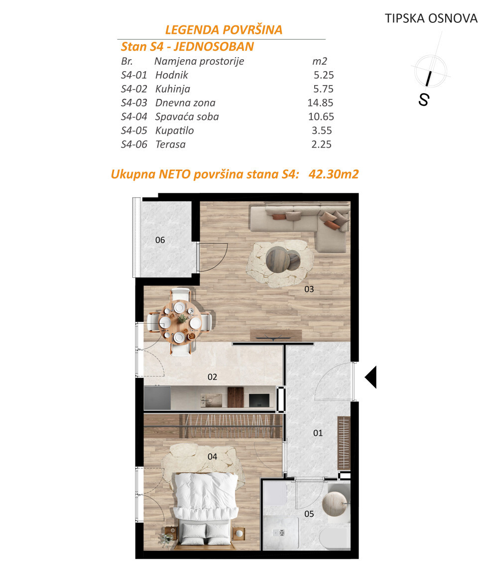Jednosobni stanovi: 40 m² i 42,05 m²