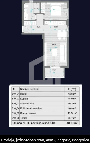 Jednosoban stan 48.19m2 u manjoj stambenoj zgradi.