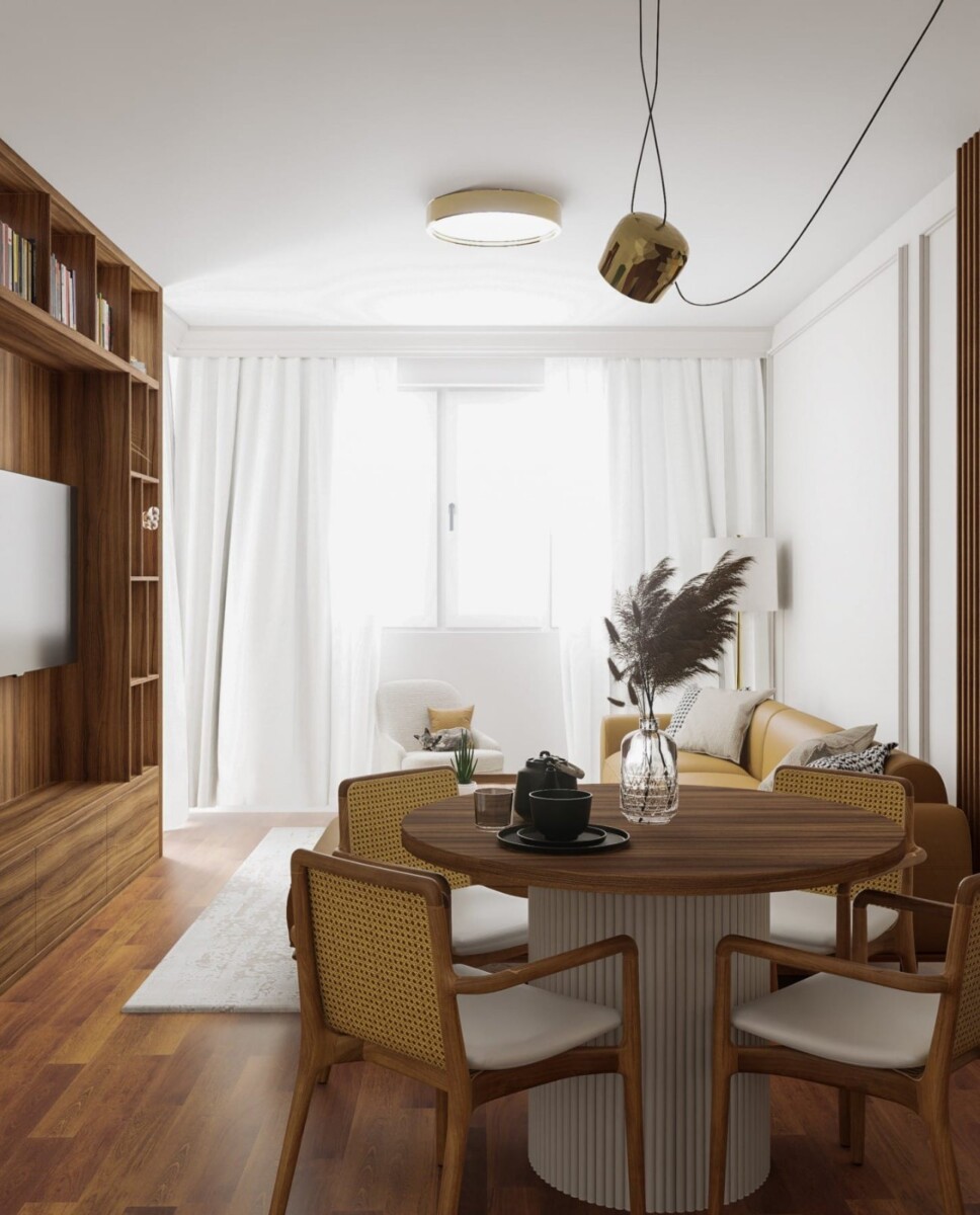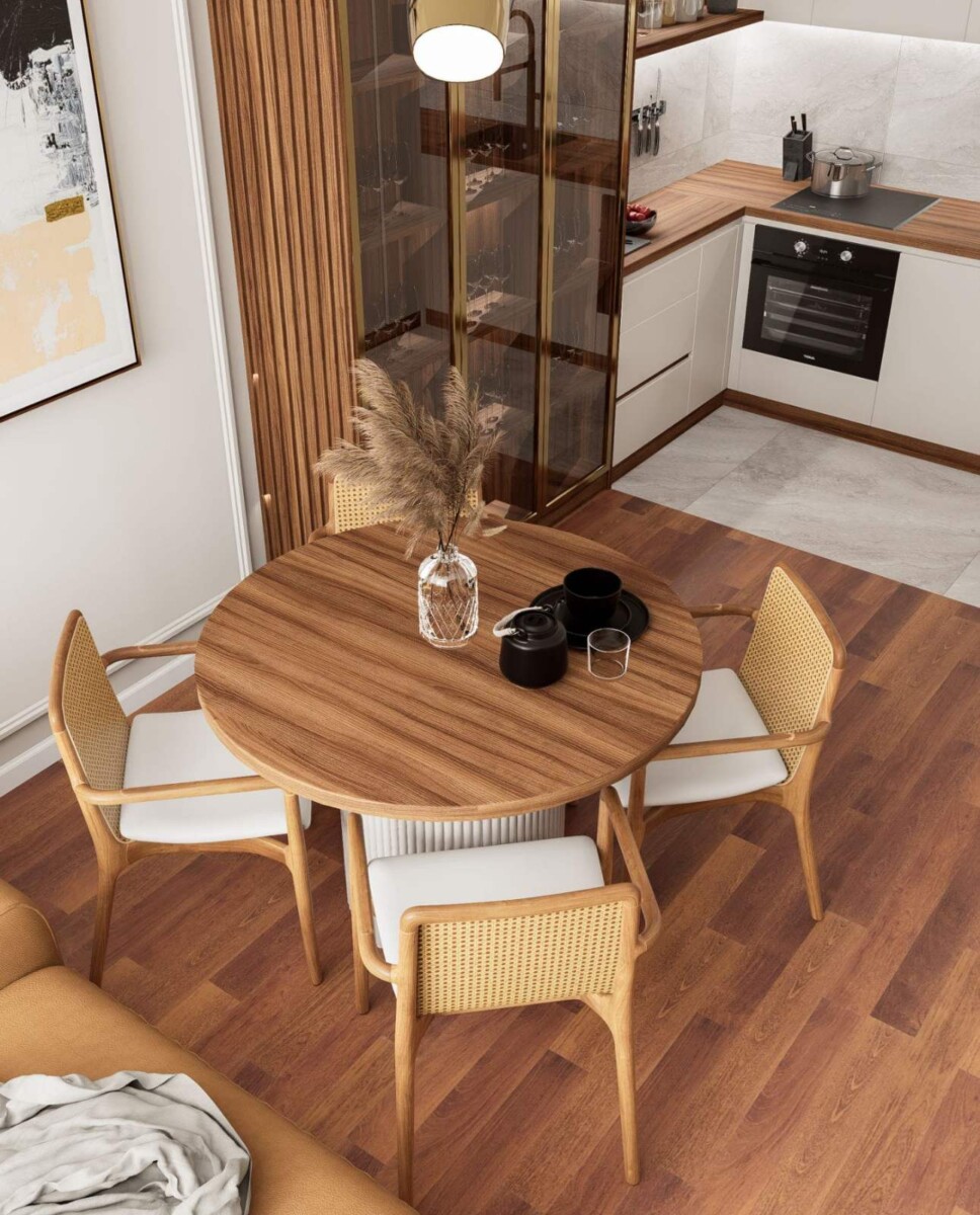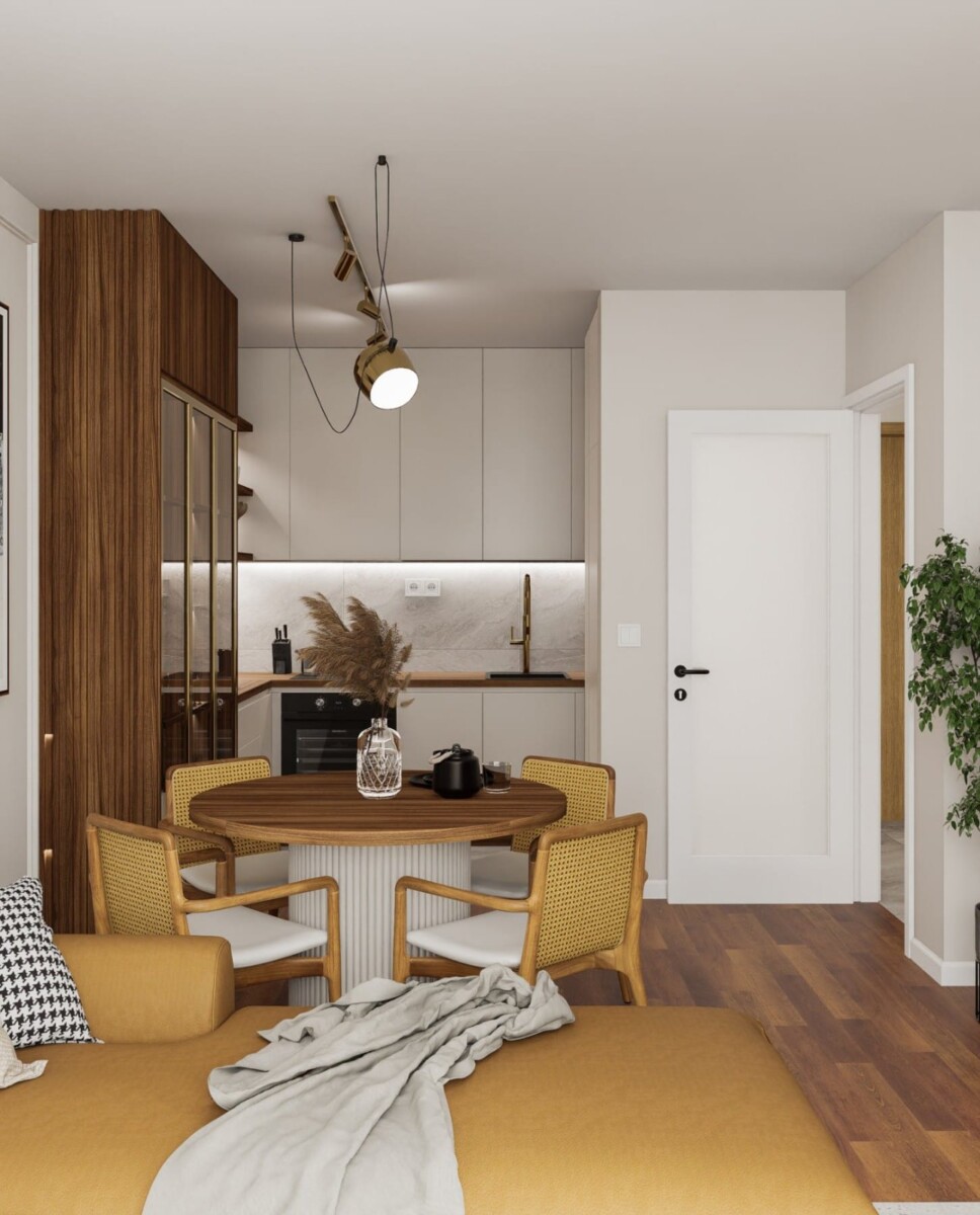 Struktura: ulazni hodnik, dnevni boravak, kuhinja, trpezarija, spavaca soba, kupatilo, ostava i terasa.
