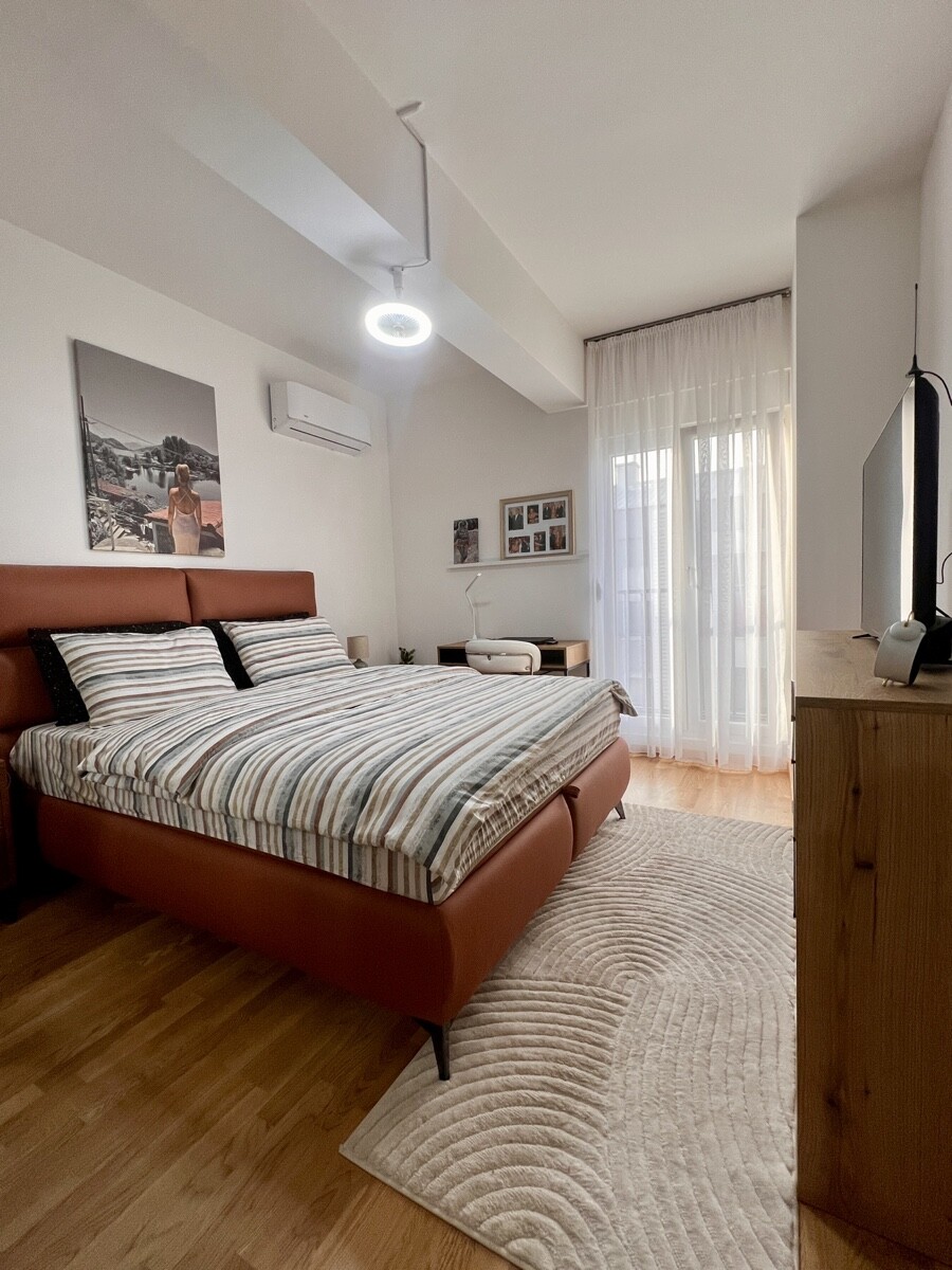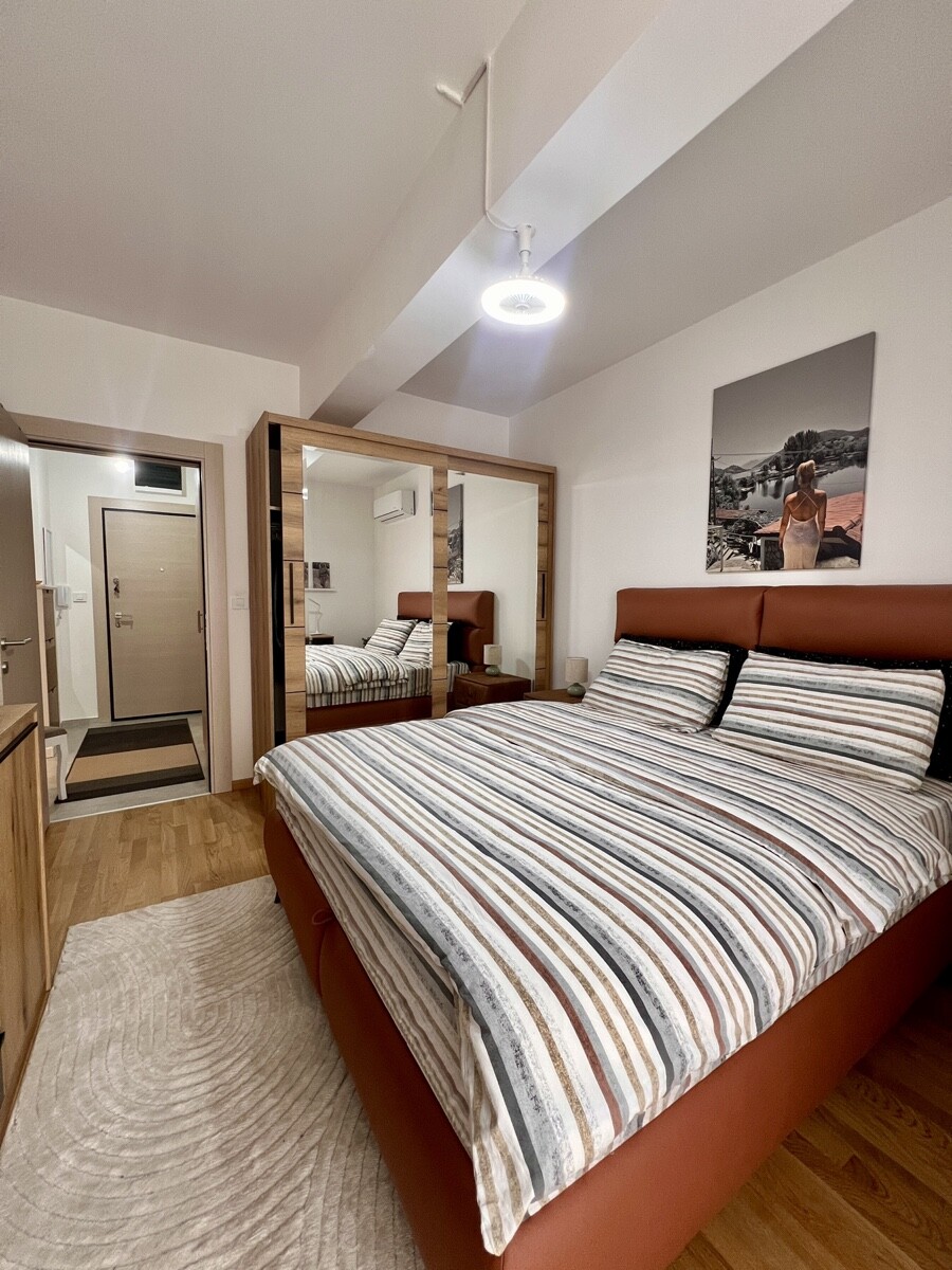Izdaje se lijepo opremljen jednosoban stan, površine 50m2, na trećem spratu stambene zgrade, u ulici Crnogorskih Serdara, u Podgorici.