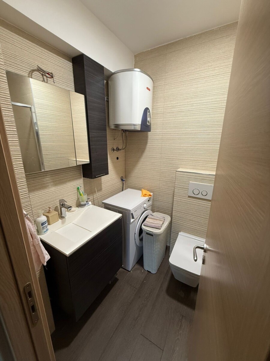 Izdaje se lijepo opemljen jednosoban stan, površine 57m2, smješten na četvrtom spratu stambene zgrade, u Budvi.