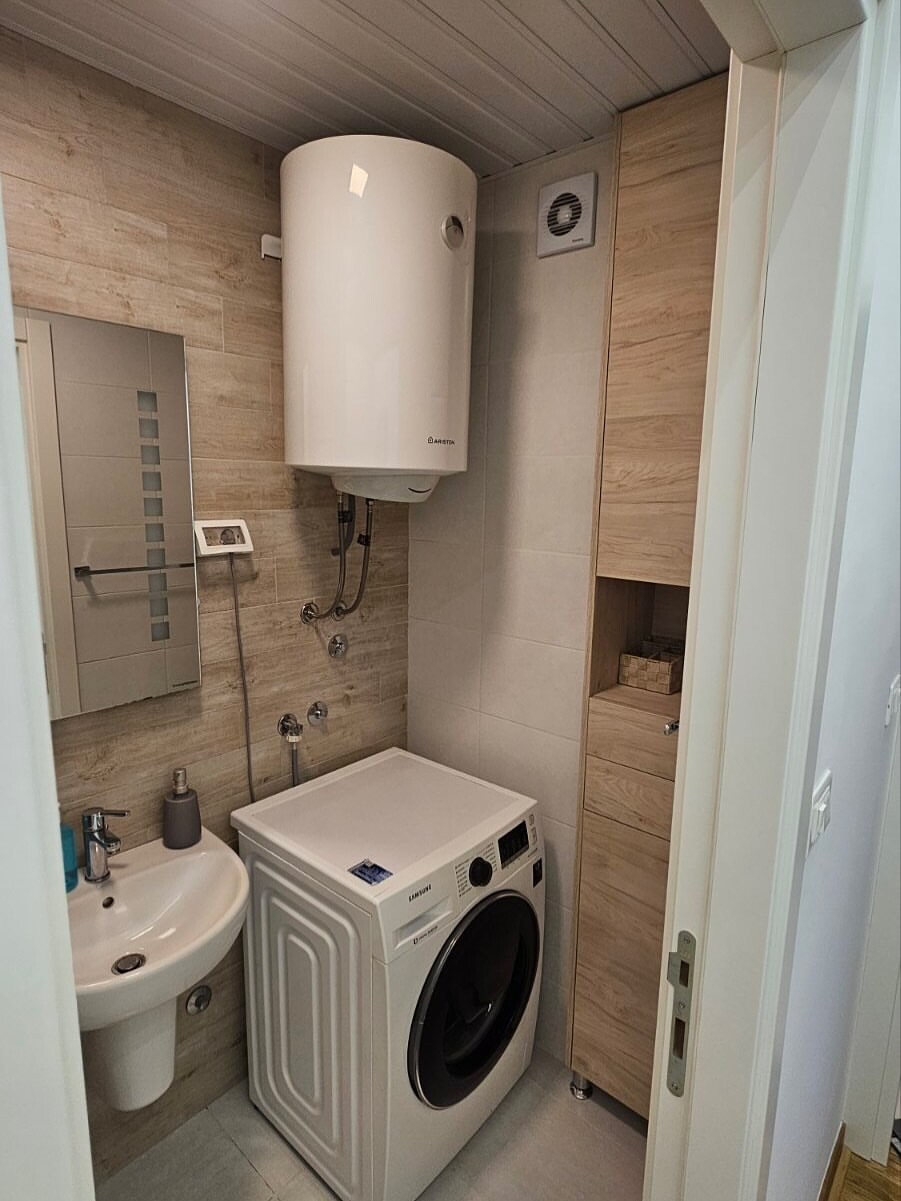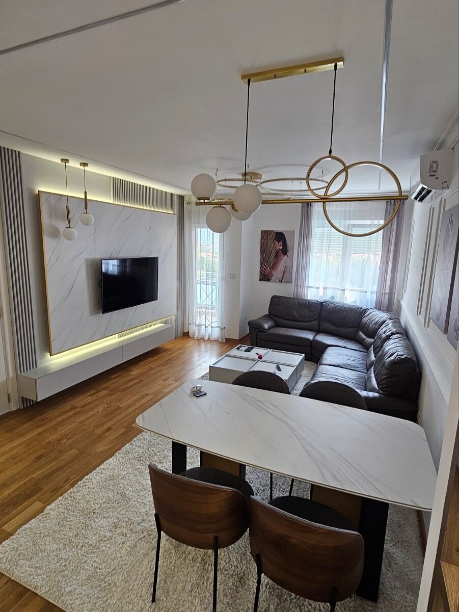 Stan se nalazi na sedmom spratu i potpuno je opremljen kvalitetnim, savremenim namještajem i uređajima.