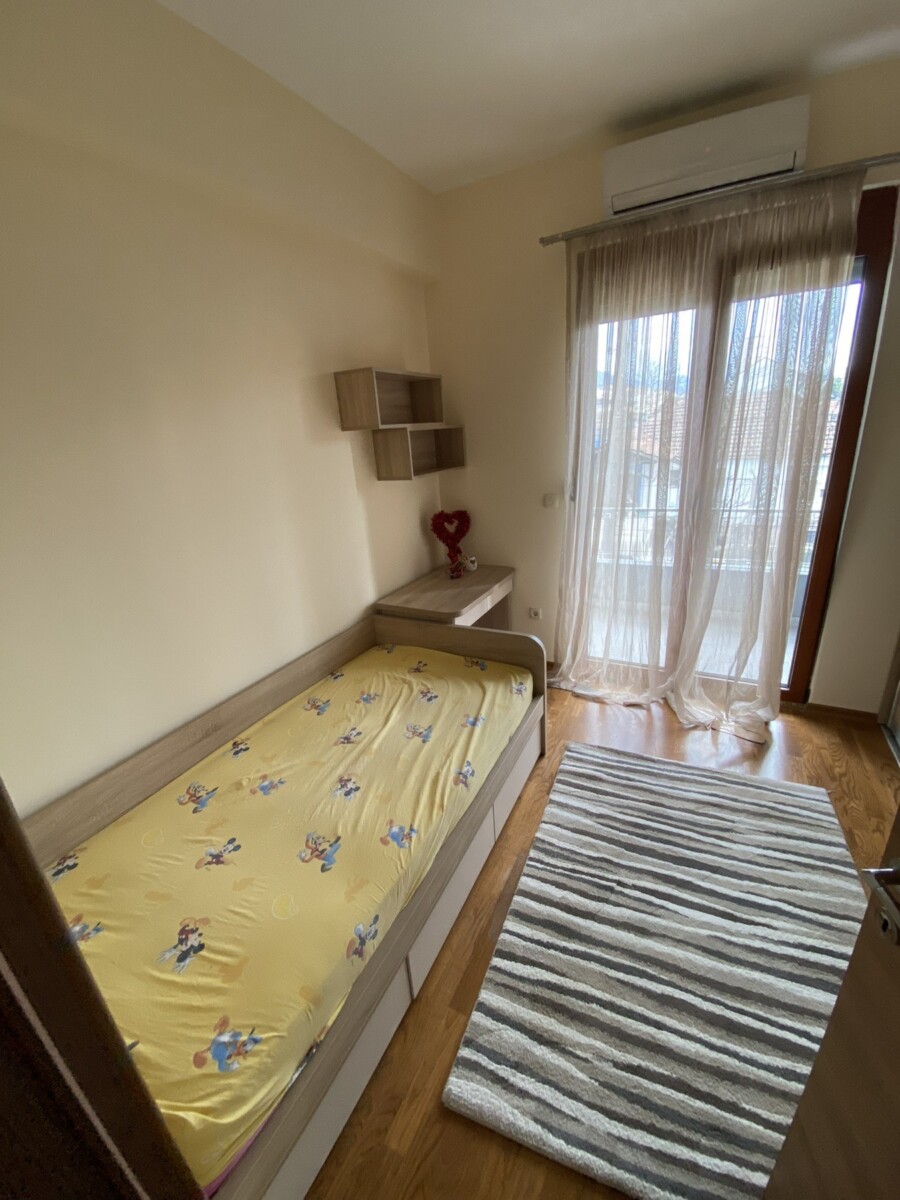 Izdaje se trosoban stan površine 90 m² preko puta Ekonomske škole, smješten na prvom spratu. Stan je lijepo namješten i odmah useljiv, a u cijenu zakupa uključena su i dva garažna mjesta. Lokacija je veoma praktična i dobro povezana. Mjesečna kirija iznosi 1.000 €.