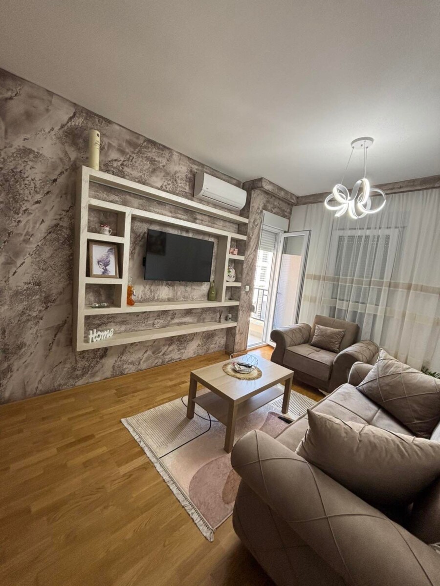 Stan se nalazi na drugom spratu uredne stambene zgrade i potpuno je moderno opremljen, sa pažljivo odabranim namještajem i svim potrebnim uređajima za udoban boravak.