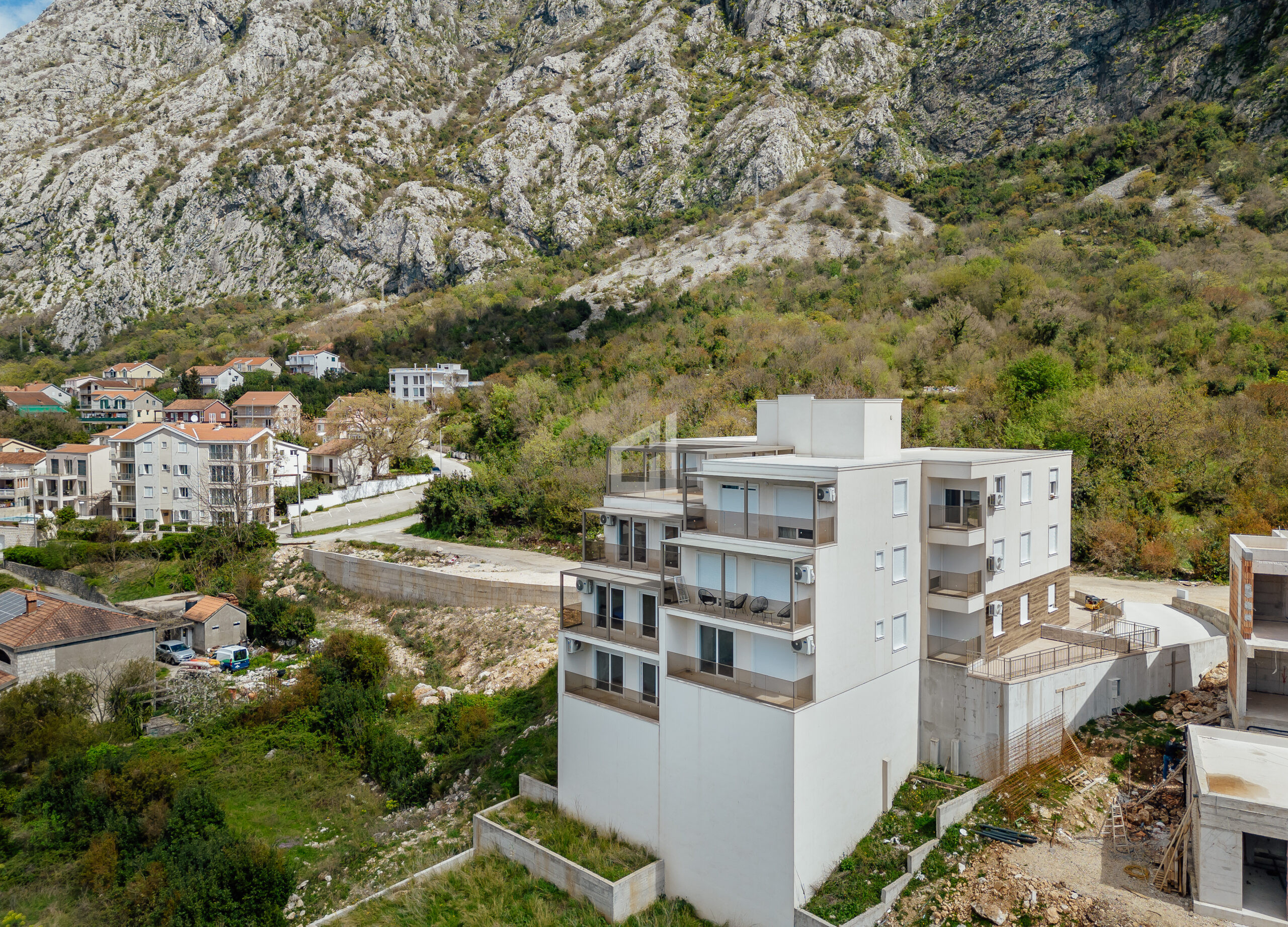 Five apartments of different structures are for sale in a new residential building – Dobrota. The size of the apartments is 50-72m2.